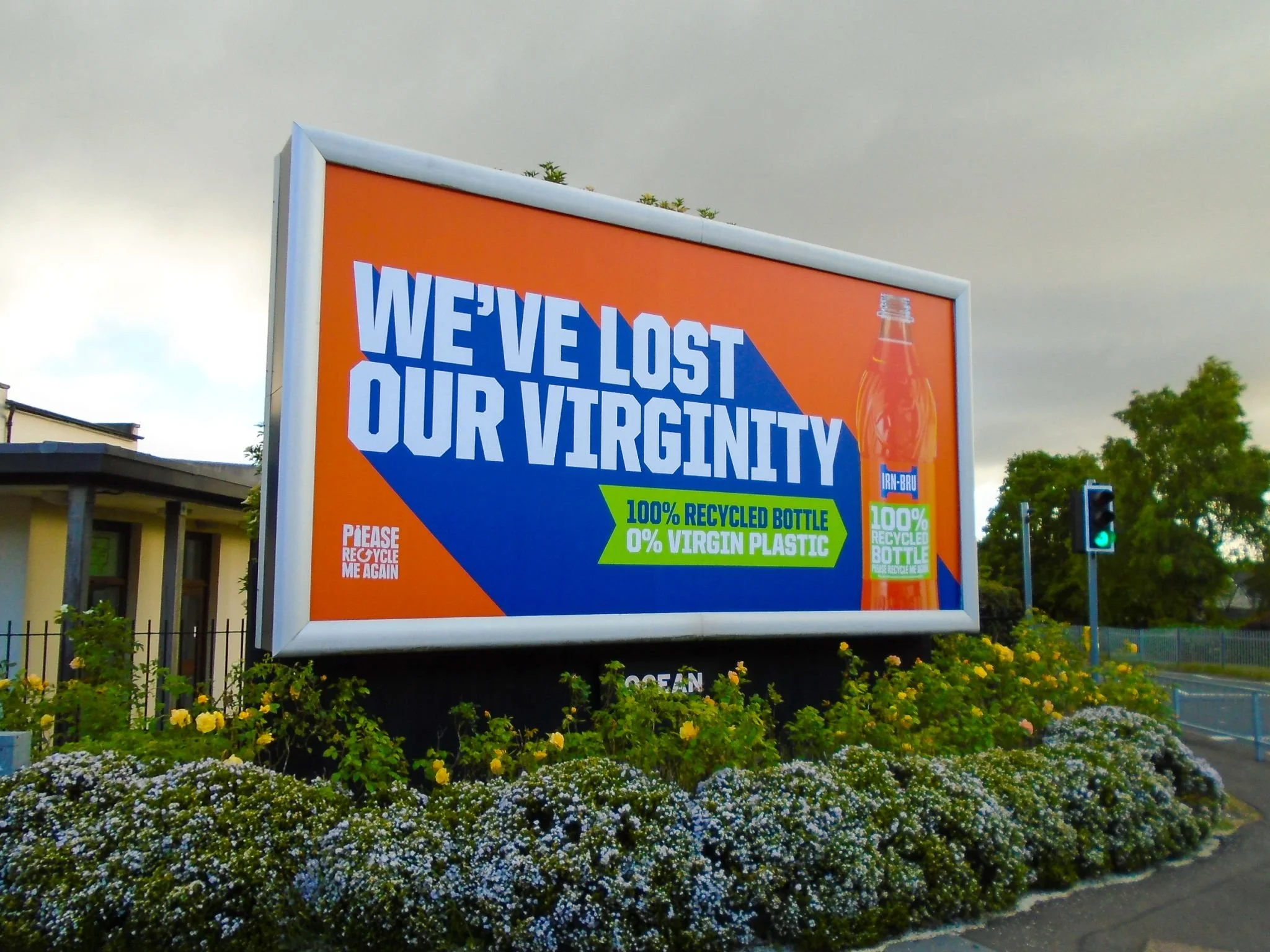 Idea: We decided to use the irreverent humour of the brand to disarm any naturally cynical environmentalists while wrapping that in the serious claim. Creatively, we expressed this as IRN BRU is losing its virginity.